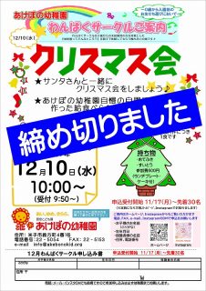 12月わんぱくサークルにたくさんのお申込みをいただきありがとうございました好評につき定員になりましたので締切とさせていただきます…