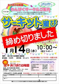 1月わんぱくサークルにたくさんのお申込みをいただきありがとうございました好評につき定員になりましたので締切とさせていただきます。…