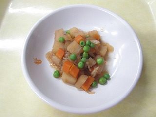 じゃがいも、人参、玉ねぎ、糸こんにゃく、グリーンピース