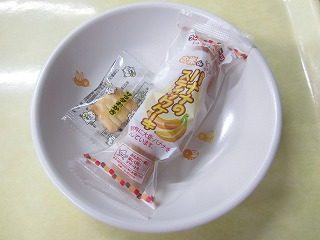 バナナのスティックケーキ、サラダおかき