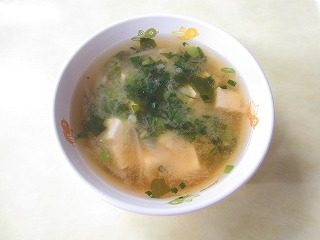 木綿豆腐、えのき、玉ねぎ、わかめ、ねぎ