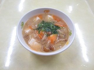 木綿豆腐、人参、玉ねぎ、白菜、なめこ、ねぎ