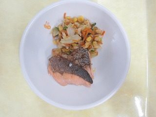 ・鮭の塩焼きとキャベツとコーンの和え物