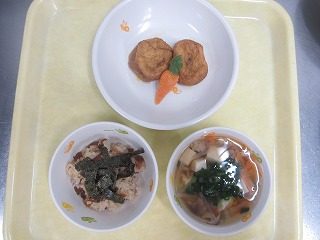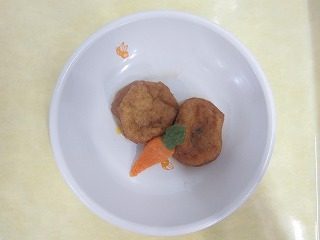 あけぼの幼稚園で使用しているがんもは、安来市にある「角久」というお豆腐屋さんの商品を使用しています!今日の煮物も、がんもがじゅわっと美味しい、やさしい味の煮物です🤗がんもは豆腐がベースになっているので、たんぱく質が豊富です。