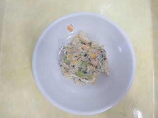 じゃがいも、キャベツ、人参、ほうれん草、ごぼう、ひじき、コーン、枝豆