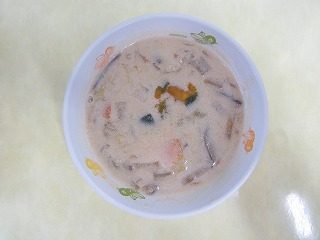 人参、玉ねぎ、白菜、椎茸、かぼちゃ、白ねぎ、豆乳