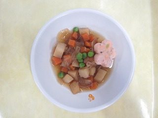 じゃがいも、人参、玉ねぎ、糸こんにゃく、グリーンピース