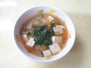 白菜、人参、椎茸、木綿豆腐、ほうれん草