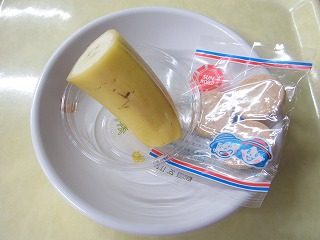 国産の米粉、野菜類を使用した硬めのしっかりした歯こたえのあるクッキーと、1本でお茶碗半分のご飯と同じくらいのエネルギーが補給できる果物です🍌バナナの糖質は吸収も早く、すばやくエネルギーに変身するためおやつにも最適です!
