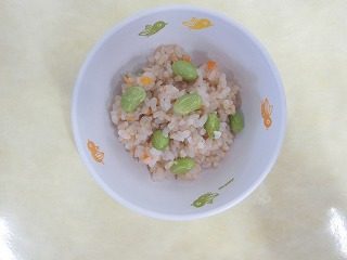 枝豆と人参のきれいな色が食欲をそそるご飯です!