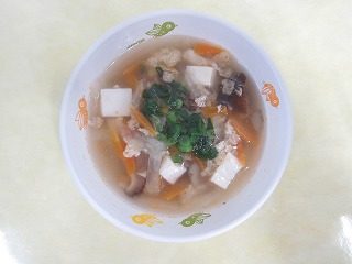 絹ごし豆腐、人参、大根、干し椎茸、ごぼう、油揚げ、ねぎ