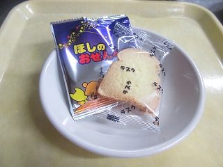 可愛い星形のおせんべいと、クリーム味のラスクです!