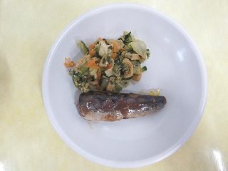 いわし、キャベツ、人参、きゅうり、油揚げ、ほうれん草、白いりごま