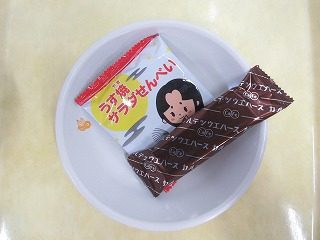 パリッパリッとしたあっさり塩味のおせんべいと、ココア味のウエハースです。