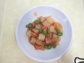 じゃがいも、人参、玉ねぎ、糸こんにゃく、グリーンピース