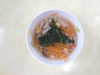 人参、玉ねぎ、えのき、しめじ、コーン、ほうれん草