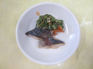 ・アジの塩焼き、オクラの和え物
