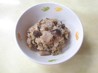 発芽玄米、塩麹、人参、椎茸、舞茸、油揚げ、塩昆布