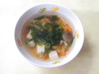 絹ごし豆腐、人参、えのき、しめじ、わかめ、ねぎ