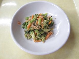 ほぐしたツナに醤油や酢を混ぜて味を付け、蒸したブロッコリーと人参を加え全体を和えていきます。さっぱりしながらも、コクのある味に仕上がっています🥦