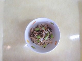 発芽玄米、塩麹、枝豆、人参、塩昆布