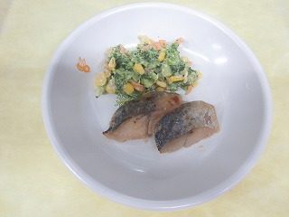 サワラ、ブロッコリー、人参、コーン