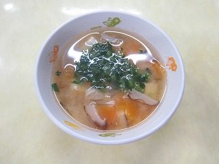 さまざまな野菜と豆腐を合わせた味噌汁は、一杯で多くの栄養素を含む献立の要です。人参のβカロテン、小松菜のカルシウムや鉄分、椎茸の旨み成分が溶け合い、栄養バランスを整えます。玉ねぎの自然な甘みが全体をまとめ、子ども達にも親しみやすい味わいです。発酵食品でもある味噌は腸内環境を支え、体調管理にも役立ちます。