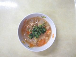 人参、玉ねぎ、なめこ、白菜、油揚げ、ねぎ