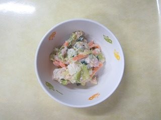 キャベツは、やわらかく甘みがあり、ビタミンCが豊富です。ツナのたんぱく質と組み合わせることで、筋肉や血液のもとをつくります。ツナの良質な脂質は、脳の働きを支える栄養素です。彩り野菜を加えることで、視覚からも食欲を促し、栄養バランスを整えます。