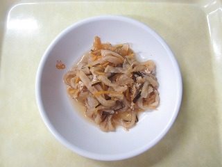 あけぼの幼稚園は「ゆで干し大根」という、大根を一度ゆでてから干したものを使用しています。大根をゆでてから干すため、食感が柔らかく、風味も豊かです。今日の煮物も、味がしみ込んだふっくら柔らかい煮物になっています!