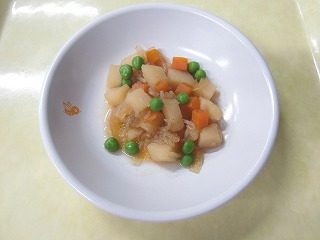 じゃがいも、人参、玉ねぎ、糸こんにゃく、グリーンピース
