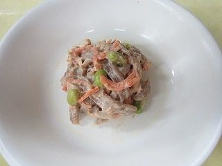 今日は少し暖かく、過ごしやすい気温でした! 今日の給食は・枝豆ご飯・けんちん汁・あじの塩焼き・さつまいもサラダ・枝豆ご飯発芽…