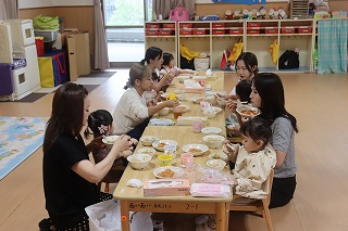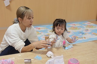 その後、紙粘土に絵の具を混ぜてペン立て作りをしました