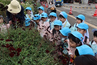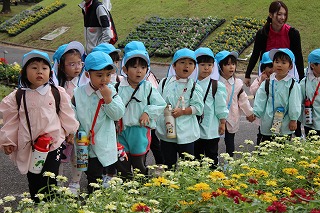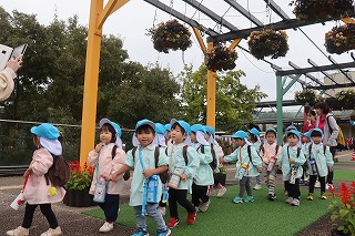 入口を入るとハロウィン仕様になっていて、子ども達は「わぁ~おばけがいるよ」「お花に目が付いているよ」と大喜びでした