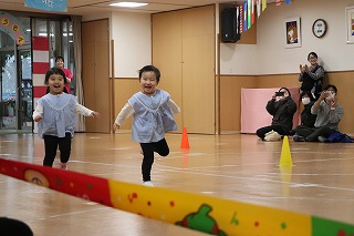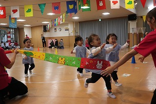 かけっこでは、名前を呼ばれると「はい!」と元気よく返事をしてゴールに向かって走る事ができました👏