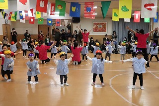 『フルーツポンチ』の踊りでは、曲に合わせてかわいく踊る子ども達😊おいしそうなフルーツポンチが完成しましたね!