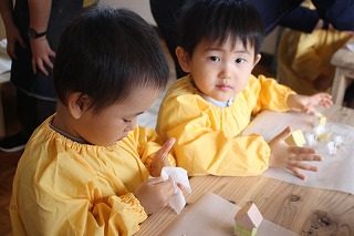 好きな色を選び、こびっとハウスの屋根を塗るワークショップも体験しました🎨