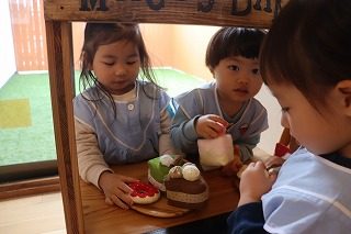 温かみのある木のおもちゃで、ごっこ遊び等で思う存分遊びました☺️