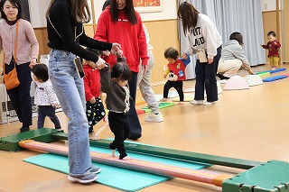 リキッドフロア、巧技台、トランポリン、鉄棒、バランスストーン等たくさん用意して、自分のお気に入りの場所を見つけて何度も楽しんでいました♪