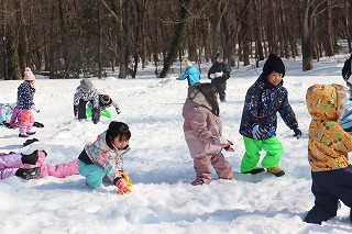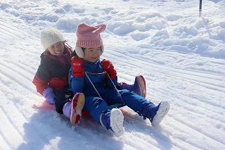 始めに雪遊びをして、そりを自分達で運び、友だちと一緒にそりで滑りました🎿