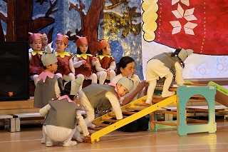 本番当日はたくさんの保護者の方を前に、少し緊張しているようでしたが、練習の成果を十分に発揮することができました!元気いっぱい踊ったり、セリフを言ったりする姿が見ていただけたのではないでしょうか😊