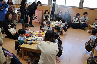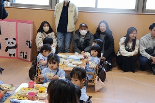 発表会後の給食参観では、子どもたちがおいしそうに給食を食べているところを見ていただきました。箸🥢やスプーン🥄を上手に使って食べているところをお家の方に見てもらえてとても嬉しそうな子どもたちでした☺️