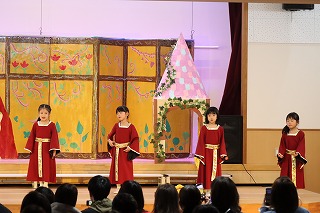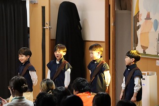 3クラスが同じ演目をしたので、お互いに劇を見合い、「〇〇ちゃんの台詞の言い方がステキだな、〇〇くんの踊りが上手だな」と思い、自分もがんばろう!と高め合ってきました❤️
