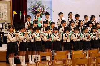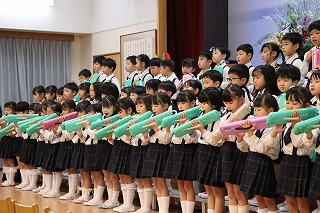 修了式前に、鍵盤ハーモニカ🎹「かがやくみらい」を披露しました。歌と演奏がとても上手でした!