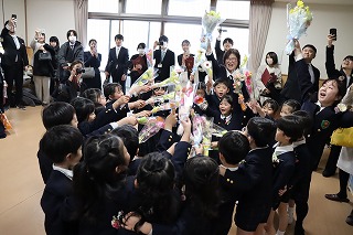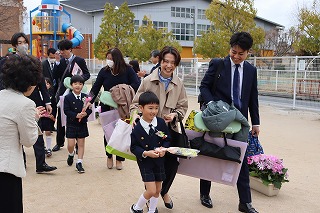 退場し、各クラスの教室に戻ってからは、担任の先生の最後の話を聞いたり、保護者会さんからの花束を受け取ったりしました💐